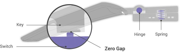 Our engineers added pivoting buttons to the ROG Strix Impact II Moonlight White because shorter travel times result in faster clicks. To balance the keys and shorten the distance between buttons and switches, the mechanism makes use of springs and metal hinges. The end result is a short distance travelled and a quick return, guaranteeing excellent speed, responsiveness, and consistency with each click.